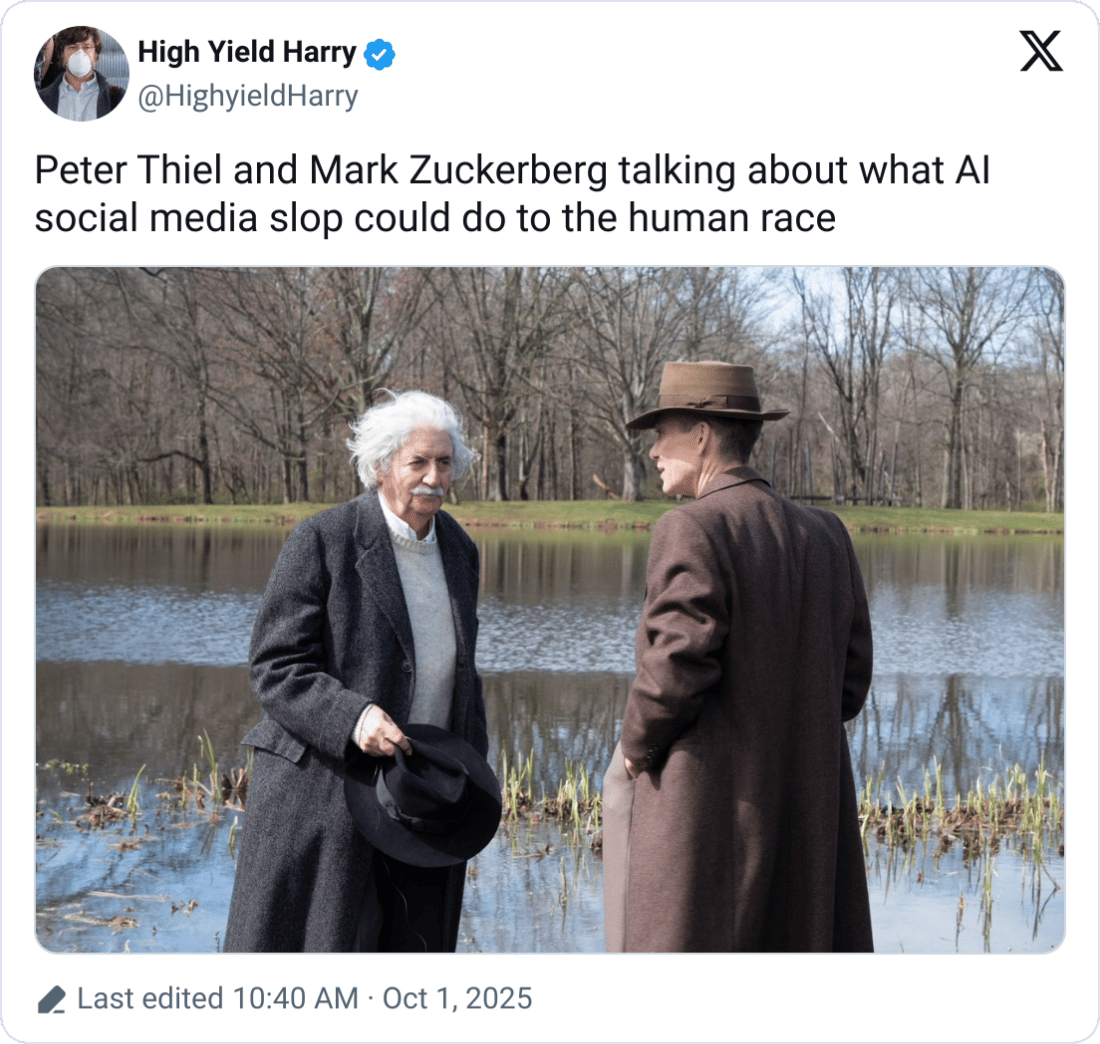 TL;DR. OpenAI just passed SpaceX with a $500B valuation, becoming the most valuable private company in the world. As if that weren’t enough, it also launched a TikTok-style app this week that lets users create biometric video cameos, but it was quickly flooded with hyper-realistic deepfakes of CEO Sam Altman and widespread copyright issues. Meanwhile, legendary game maker EA Sports is reportedly nearing a record-setting $50B deal to go private in what could be the largest leveraged buyout in history.
